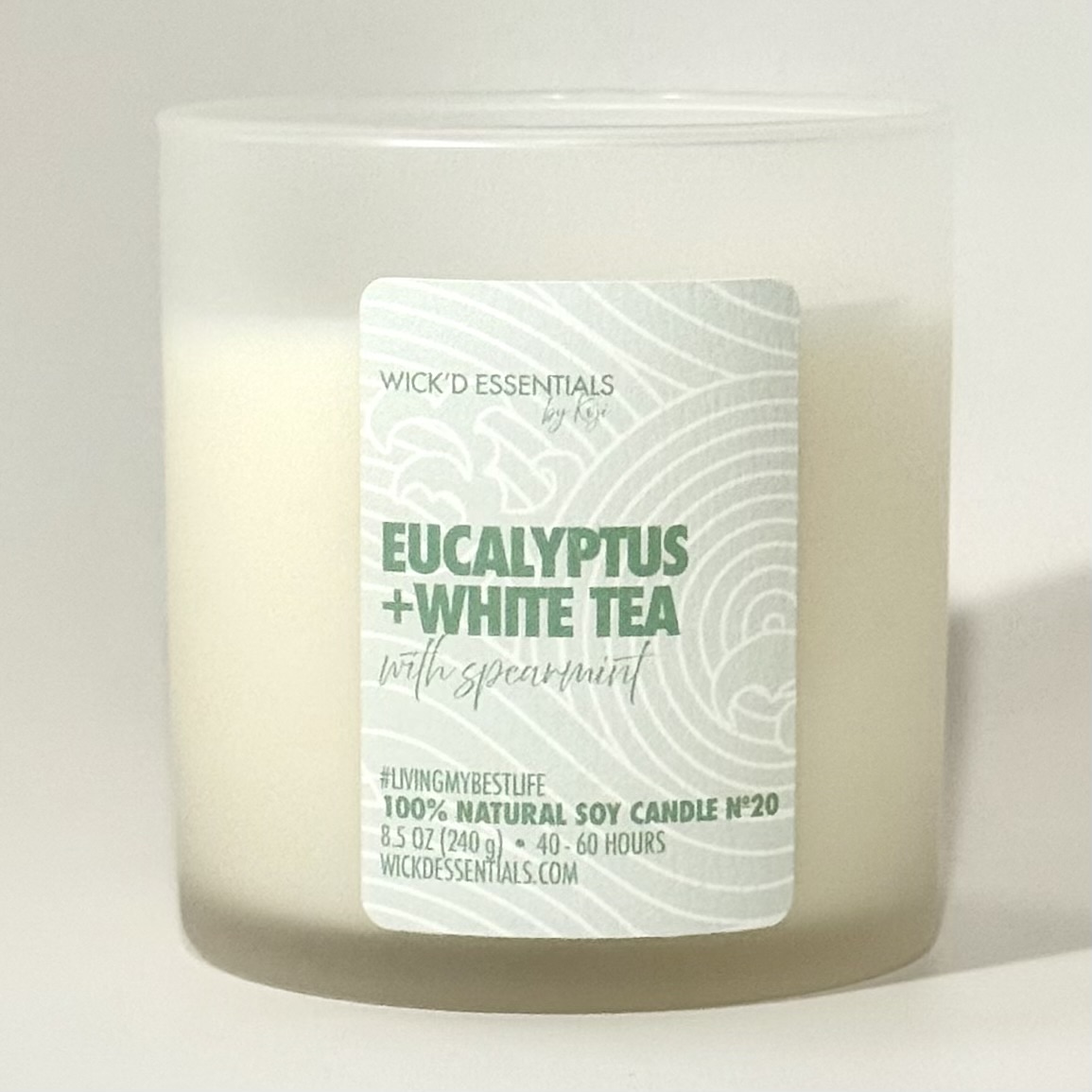 Indulge in pure tranquility with our hand-poured Eucalyptus and White Tea soy candle and melts. Crafted with love, this clean-burning candle features a rejuvenating fragrance that combines the clarity of eucalyptus with the delicate sweetness of white tea. Let the gentle ocean breeze, captured in notes of sea salt and jasmine, carry you away. Make this candle part of your ultimate relaxation ritual.